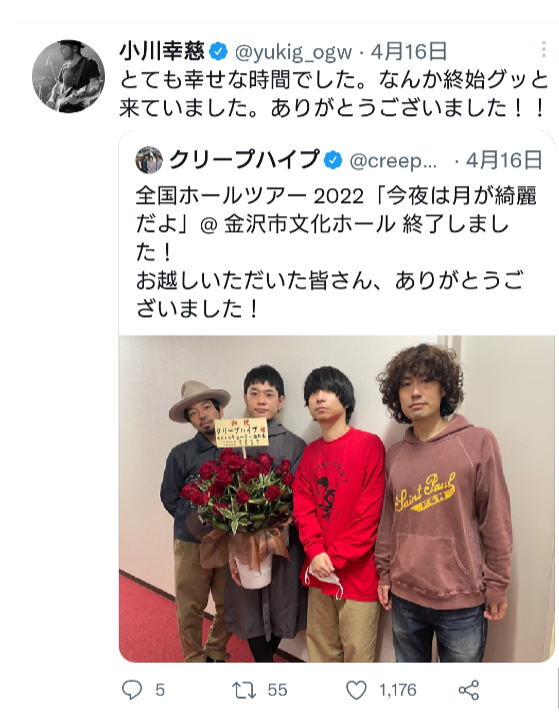 次に、Gt 小川 幸慈さんのTwitterを紹介します。