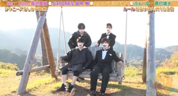 ふぉ~ゆ~の辰巳雄大さん、A.B.C-Zの河合郁人さん、田中さん、菊地さんの4人で旅をする「すこジャニ」にて、先輩の辰巳さんと河合さんにいたずらを仕掛ける場面が見られました。