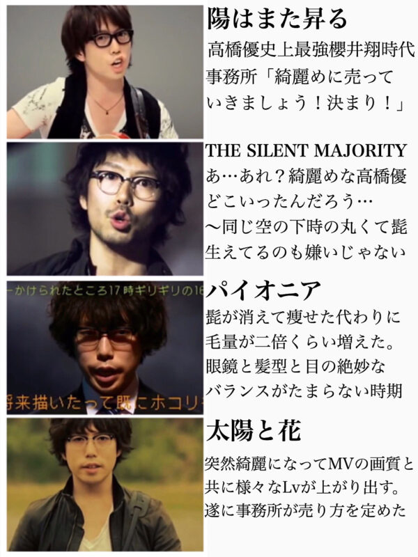 高橋優さんの年代を追ってのお顔が把握できますね。