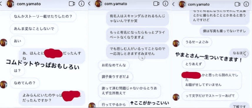 そのストーリーが話題になっていることを聞きつけたやまとが視聴者へDMし、口論に発展しました。