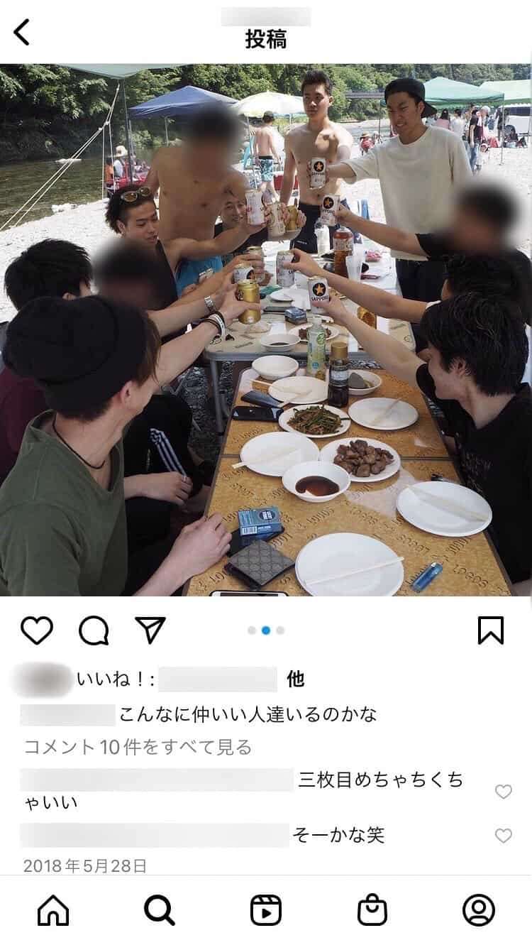 地元の友達がインスタグラムにて投稿した写真ですが、当時未成年であったひゅうがさん、ゆうたさん、ゆうまさん、あむぎりさんが喫煙、飲酒していました。