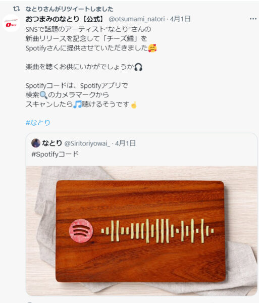 4月のなとりさんのTwitterには、[おつまみのなとり]とのコラボ記事がありました。