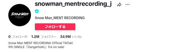 次にSnowmanの公式TikTokアカウントを調査してみました。