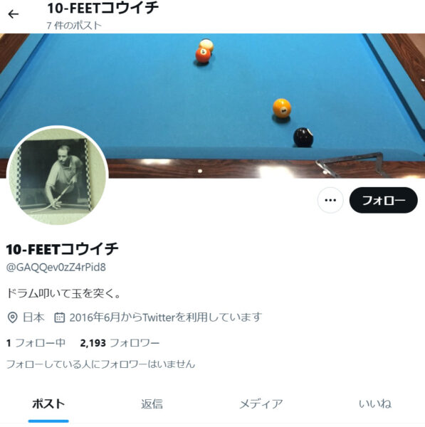 KOUICHIさんのXは最初検索でヒットしなかったため、存在しないのか....と諦めかけていましたが、10-FEETの公式サイトのプロフィールページを見たところ、Twitterの文字があったため開いてみました。(もちろん他のメンバーの各種SNSのリンクもここにあります)
