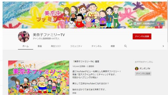 美奈子ファミリーのYouTubeチャンネルの購読者数、動画再生回数から独自に調査しました。