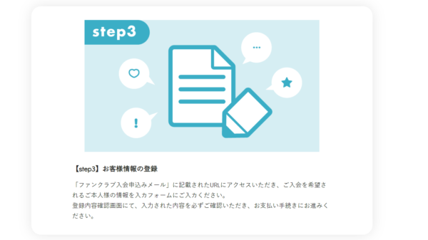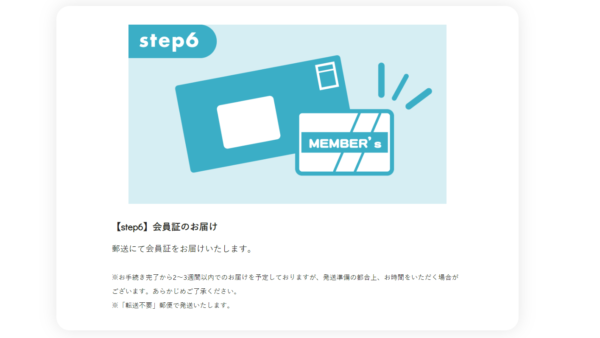 先に説明致しました、ファンクラブ入会が完了してから2、3週間で会員証が家に郵送されます。
