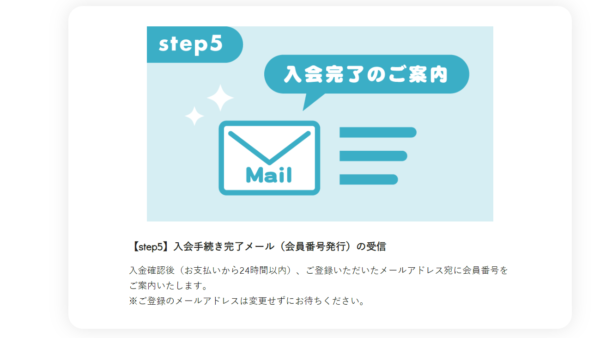 支払い完了が確認されましたらメールが届きますので、これで入会は完了です。