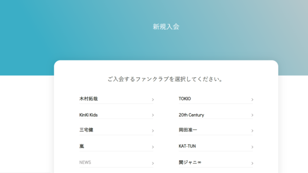 そして入会したいアーティストはNEWSなので、NEWSをクリックします。
