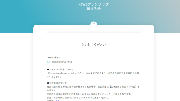 NEWSのファンクラブ入会方法は、画面に従って行っていくととても簡単にできます。