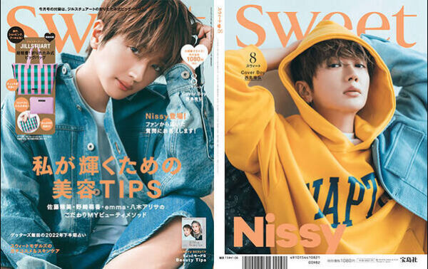 Nissyは雑誌「sweet」8月号の表紙、裏表紙を務めています。